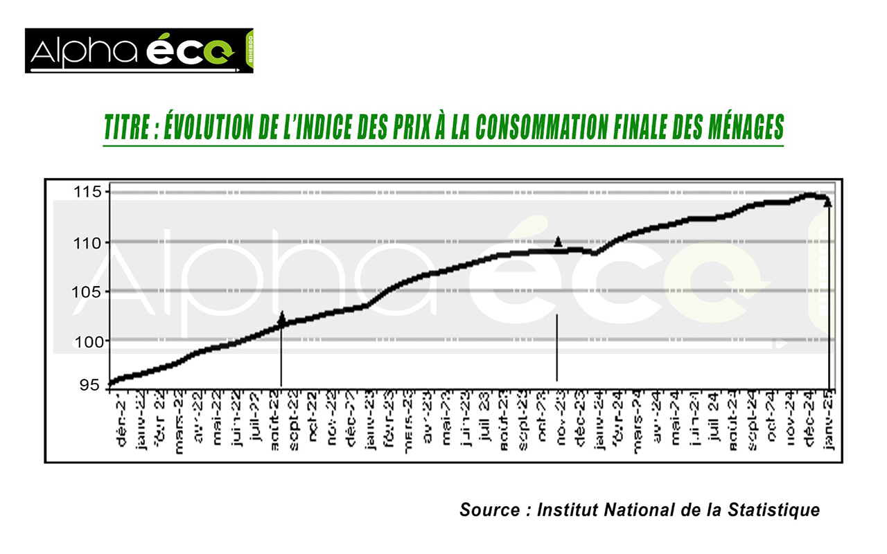 Dernière mise à jours il y'a 11 moisLa note mensuelle sur l'évolution des pris a la consommation finale des ménages, publiée par l'Institut National de la Statistique renseigne qu'à fin janvier 2025, les prix à la consommation ont enregistré une baisse de 0,2% par rapport au mois précédent.