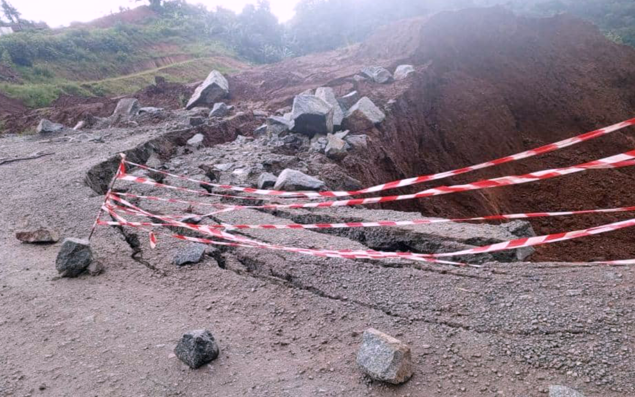 chaussée a un risque d'effondrement. La situation a pris de l’ampleur avec l'instabilité des sols, leur forte teneur en eau et le non-respect par certains usagers, notamment les conducteurs de poids lourds, de l'interdiction de circulation sur la voie provisoire. Face à ce constat, le Ministre des Travaux Publics a dépêché une équipe technique pour appuyer l'entreprise CFHEC dans la mise en œuvre immédiate de mesures correctives