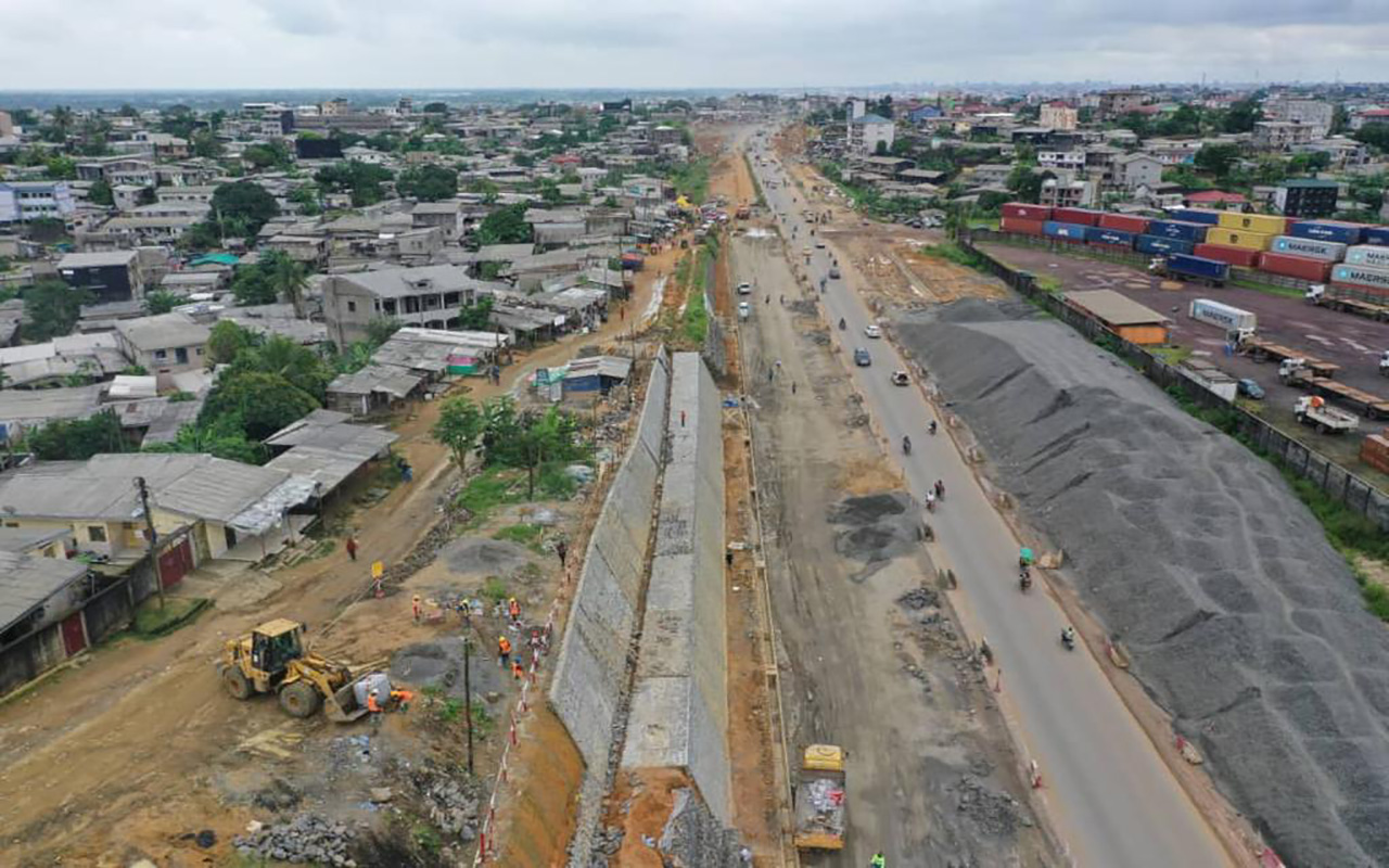 Cette étape va permettre la mobilisation des entreprises pour les voies identifiées, à savoir Ari-logements sociaux (3,1 km), Ari-école publique de Yatchika (4 km) et collège CPLAN-Cimetière de Nyalla-Parisco (3,8 km). Les travaux routiers pour leur part, se poursuivent en attendant le démarrage des travaux des ouvrages et leur avancement physique est de 74%. La pose des caniveaux est quasiment achevée avec 8670 ml dans le sens 1 et dans le sens 2 8470 ml. La couche de forme réalisée dans le sens 1 couvre 8030 ml et dans le sens 2, 7560 ml. Les travaux de mise en œuvre de la couche de fondation à date, couvrent 7540 ml dans le sens 1 et 4980 ml dans le sens 2. S’agissant de la couche de base en grave bitume, 5570 ml sont recouverts dans le sens 1 et 3120 ml dans le sens 2 .