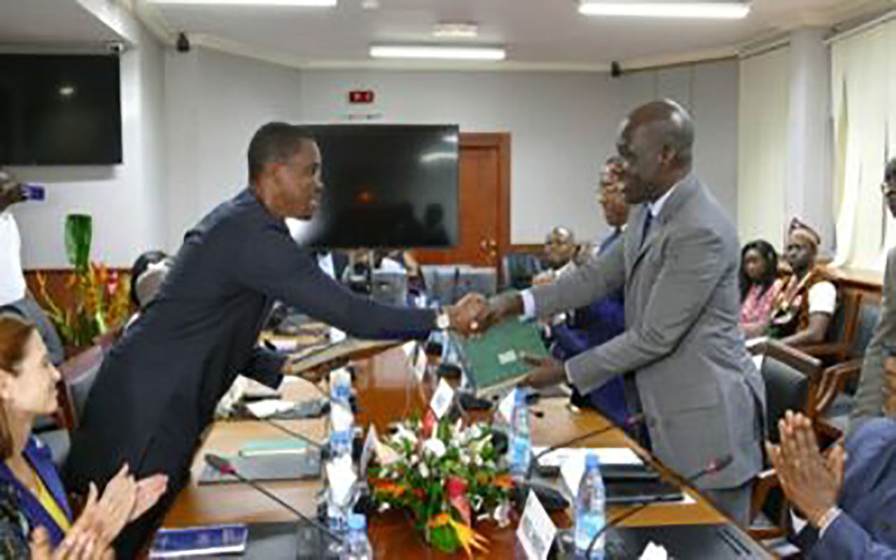 Il y a eu au cours de cette cérémonie présidée par les ministres camerounais de l’Economie, Alamine Ousmane Mey, des Mines, de l’industrie et du développement Technologique par intérim, Fuh Calistus Gentry et du Directeur de la Facilité Africaine de Soutien Juridique Olivier POGNON, la signature de la lettre d’accord d’assistance sous forme de don pour des services de conseil et des activités de renforcement des capacités dans le secteur minier entre le gouvernement camerounais et la Facilité Africaine de Soutien Juridique (ALSF).